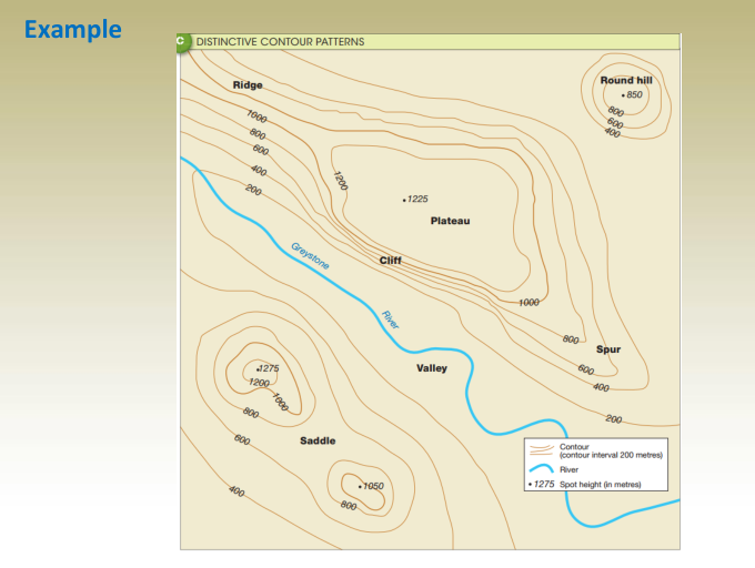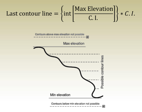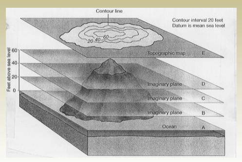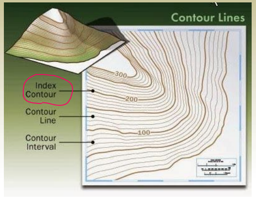• The vertical gap between two adjacent contour lines is called the contour interval.