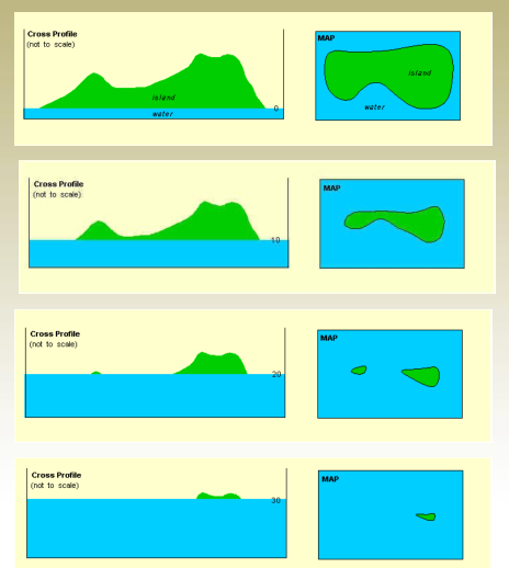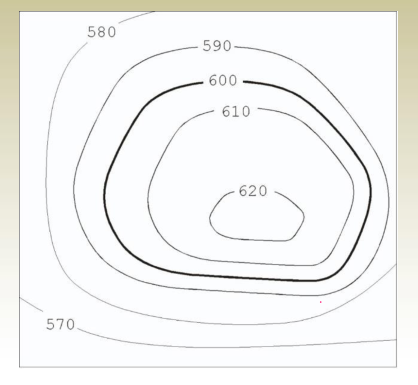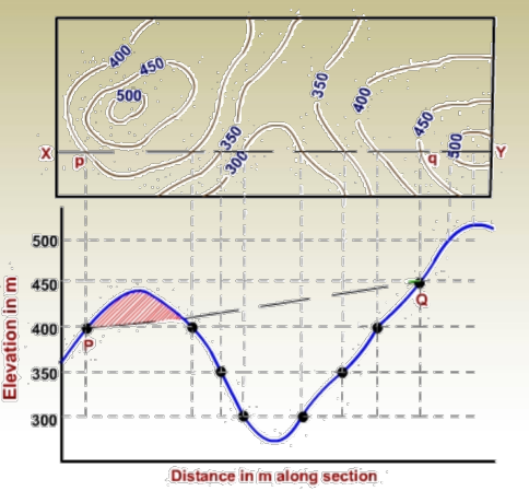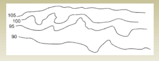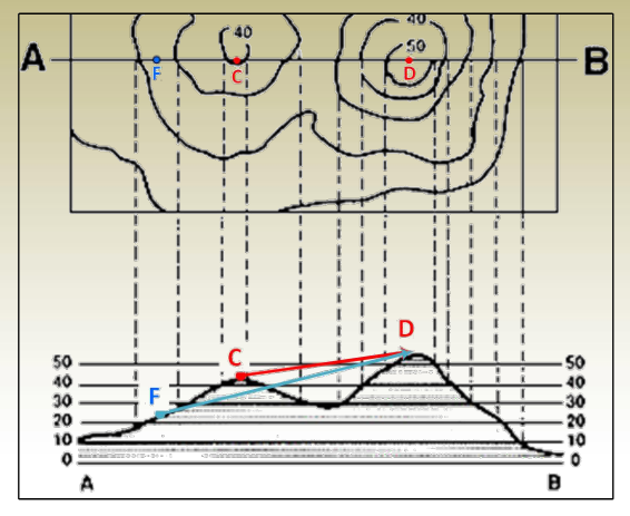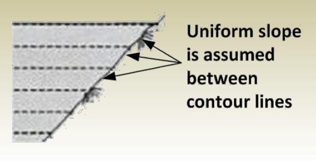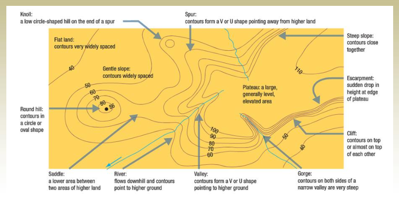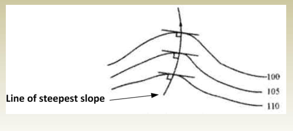 7. direction of the steepest slope at a point on the contour is at right angles to the contour.