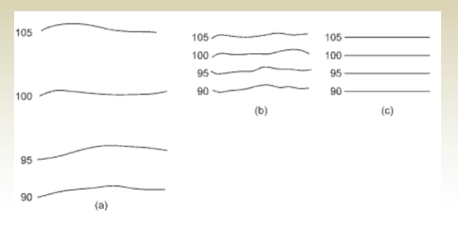 • In Figure (c), the land appears flattest, as the 1-meter contour interval reflects gradual slope changes.