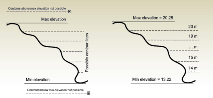 Mini. contour > Mini. elevation & Max. contour < Max. elevation